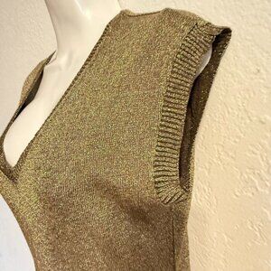 dots brand Gold Metallic Knit V-Neck Sleeveless Tunic Top With Studded Hemline S