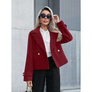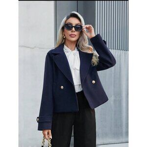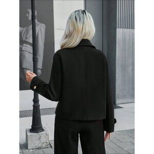 double gold button classic peacoat minimalist preppy pea coat jacket black