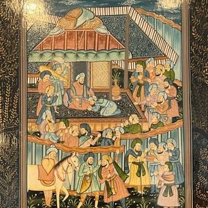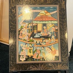 HAND PAINTED / vintage table with 2 chairs from INDIA. FOLDS for convenience. Set has only been used for decoration purposes
