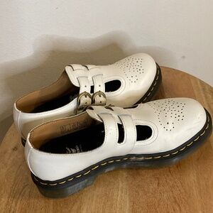 Our spin on the classic Mary Jane shoe pairs the traditional silhouette with a bouncing DM’s sole and a heavy dose of attitude. Built from Smooth leather with double straps, adjustable horseshoe buckles, and brogue detailing on the vamp. Signed with our instantly recognizable yellow welt stitching.