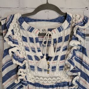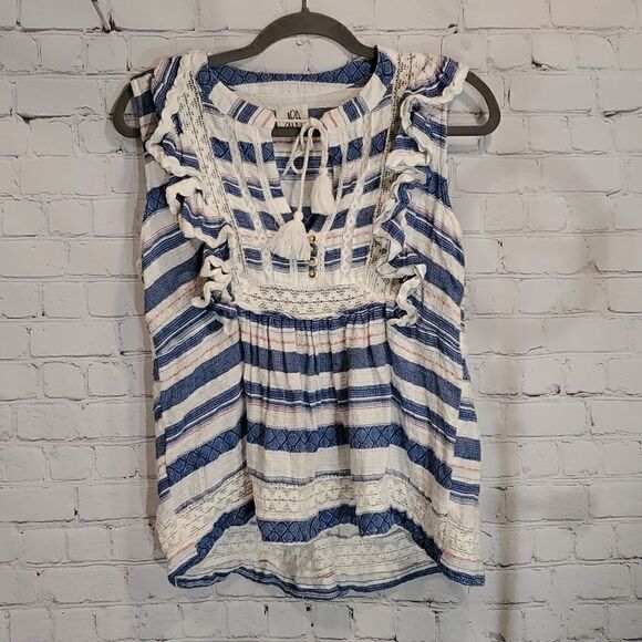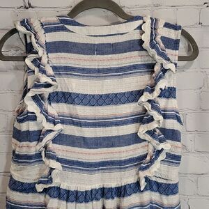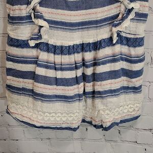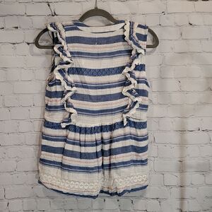 In excellent used condition tie at neck has minor fraying no other flaws. No size tag measures about 17.5 inches armpit to armpit and 21 inches long in the front and 24 inches long in the back. According to attached size chart it is a xs or s.