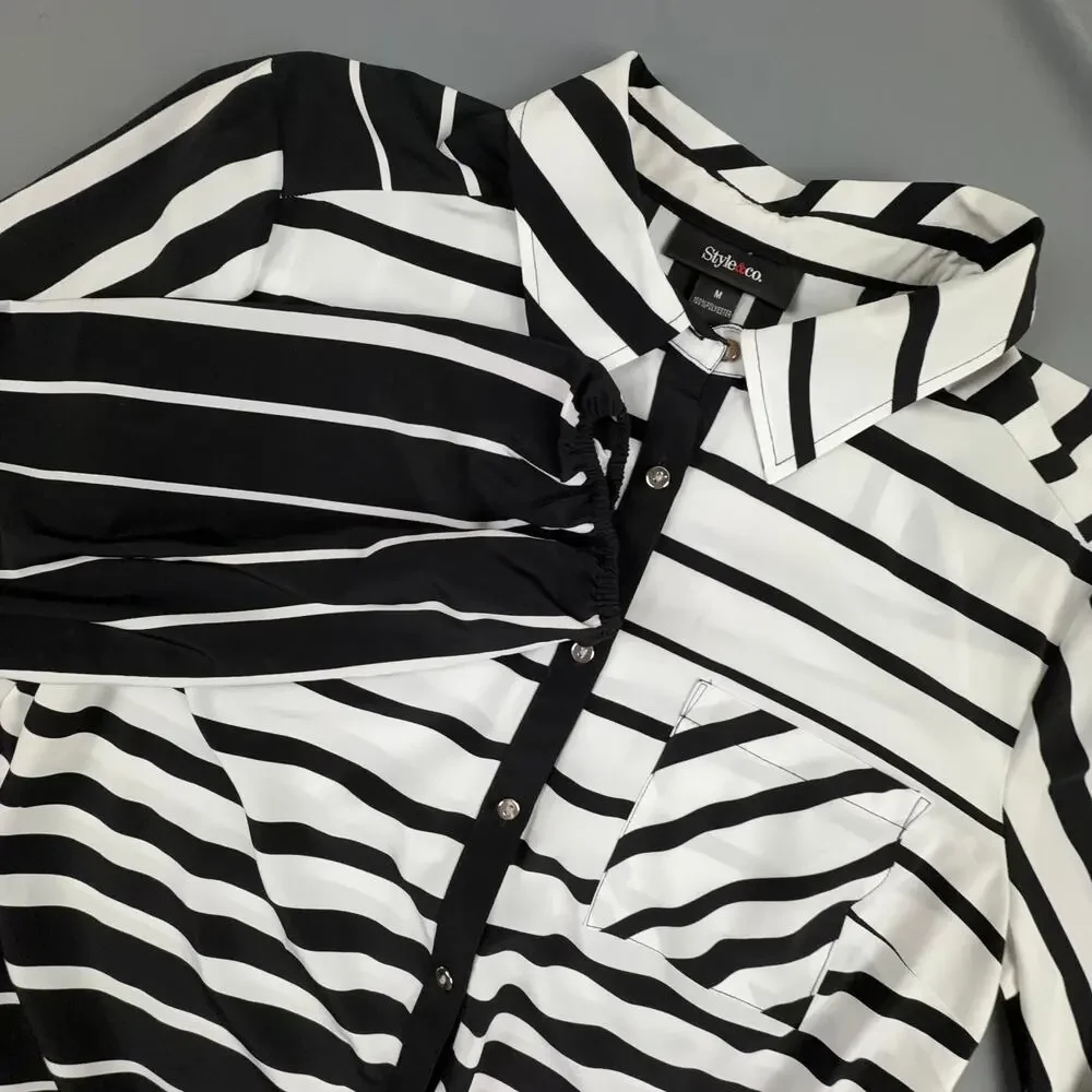 Style & Co Stripe Tie Front Button Blouse