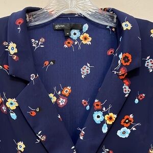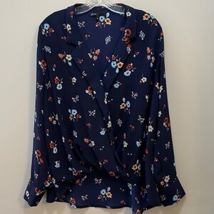 draped boho Blouse Long sleeve high-low Navy Floral semi-sheer Top size medium
