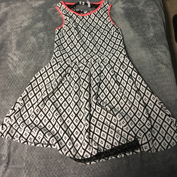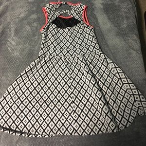 white and black with orange lining fit and flare dress