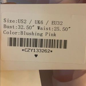 Beautiful dress for special occasion. Brand new with tags on. Ordered for a friends wedding, but she decided last minute she wanted long dresses. The pictures don’t do this dress it’s justice. Its in blushing pink color.