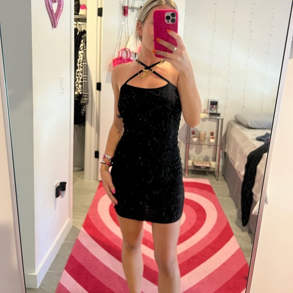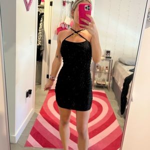 black dress. it crosses in the front. never worn!