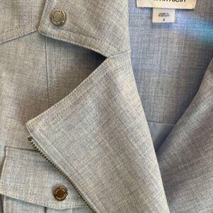 Excellent condition, Calvin Klein zip front belted dress. Wrap front zipper closure at side; self tie belt at waist