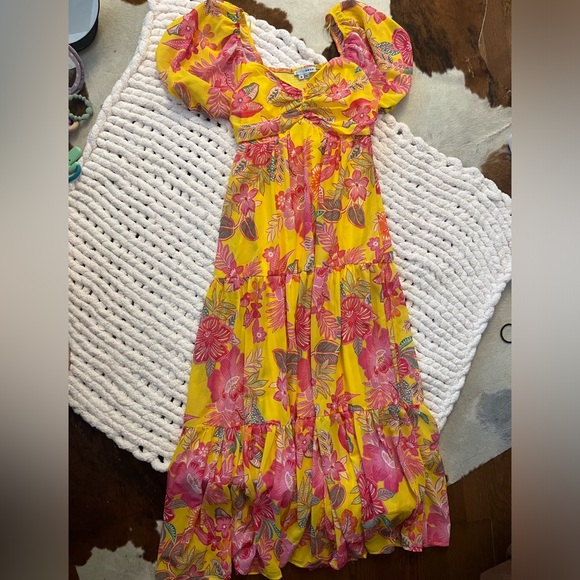 beautiful dress super comfy. wore once at a wedding, is NOT maternity although i did wear while pregnant and it fit great