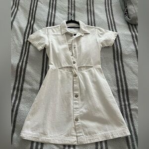 white colored cut out denim dress worn kid size 13-14, fits like an xs/s