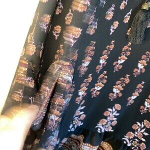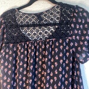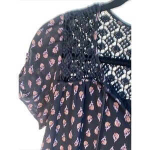 super cute hippie 70s 60s inspired !!!Beautiful forever 21 floral open knit crochet back and front prairie peasant oversize Boho V-neck crochet open back flowy baggy dress with an attached under skirt. Two front tie tassels with metal beads. Excellent used preowned condition. Can wear as a dress or tunic top.
