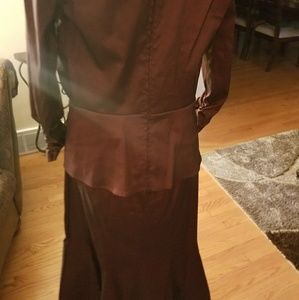 two pieces maroon color dress .stretch matreial . size 6 but can fit one upper size