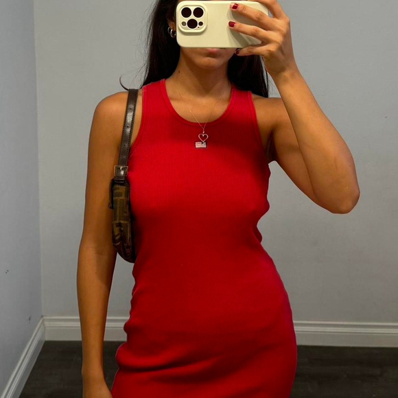 Vintage polo jeans co. Ralph Lauren Red ribbed bodycon dress!