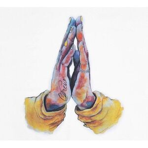 drewhouse White praying hands SS T shirt. M NWT. 100% cotton, mid weight. Oversized fit with dropped shoulders. Ribbed neckband. Screen print on front