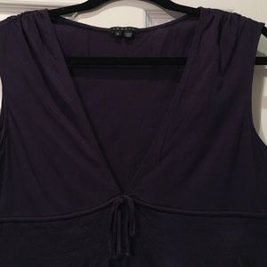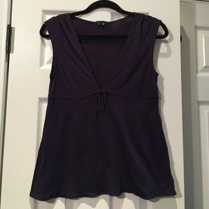 THEORY deep v neck dark purple tank w functional drawstring under bustline with all around detail, gathered shoulder pleating. Perfect condition! Pet / smoke free home.