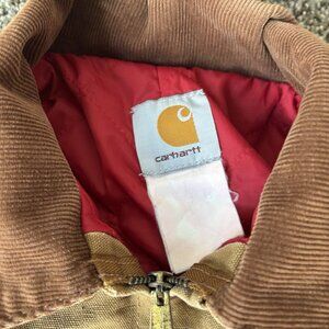 Vintage Carhartt, Detroit Jacket, Brown, Workwear, Duck Canvas, Blanket Lined (if applicable), Distressed, Faded, Chore Coat, Bomber Jacket, Retro, 90s (if applicable), Y2K (if applicable), Made in USA (if applicable), J97 (if known), J01 (if known), Women's Jacket, Small Jacket.
