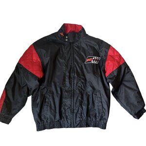 NASCAR, Vintage, Nutmeg, Racing Jacket, Puffer Jacket, Men's XL, Robert Yates, Motorsports, Collectible, 90s Fashion, Black, Red.