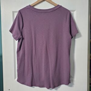 STYLE: Women's Makers Studio Cotton Rib Henley T-Shirt, Dusty Plum, Short Sleeve, Button accent