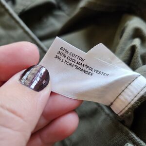 The Duluth Trading Co women's shorts in size 12 are a versatile addition to any wardrobe. These Bermuda-style, long inseam, carpenter shorts in a solid green color are perfect for a variety of occasions, from casual outings to activewear and even workwear. The flat front design and blended fabric make these shorts comfortable and easy to care for with machine washable instructions. Ideal for the warmer seasons of summer, fall, and spring, these shorts from Duluth Trading co are a practical yet stylish choice for any working woman's closet. Pre-owned