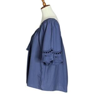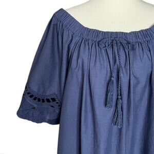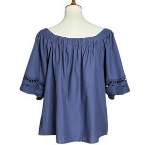 dylan 100% Cotton Relaxed Fit Peasant Top Lightweight 1/2 Sleeve Blouse Blue XL