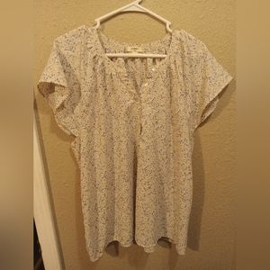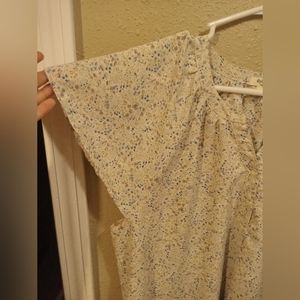 Chic cream blouse with floral pattern. Features flutter sleeves. Perfect for casual wear.