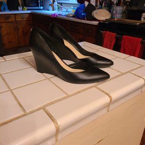 Nine West Black Leather Wedge Heels, Worn once. Size 8 1/2