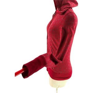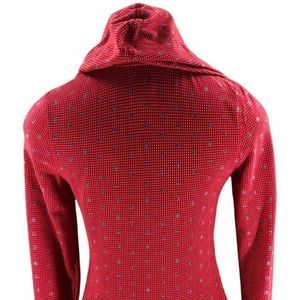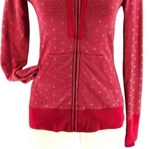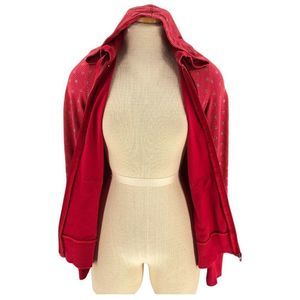 e Womens Sweater Small Red Full Zip Hoodie Hearts Print Drawstring Neck Pockets