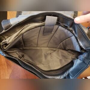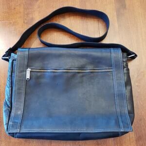 eBags vintage leather computer bag black adjustable strap some wear.