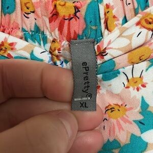 ePretty Size XL White and Pink Floral High-low Tier Lightweight Flowy Midi Skirt
