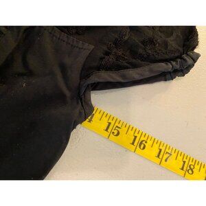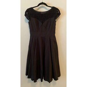 eShakti Black Dress Lace Neck Line Fit Flare 36" Long Cotton Short Sleeve XS