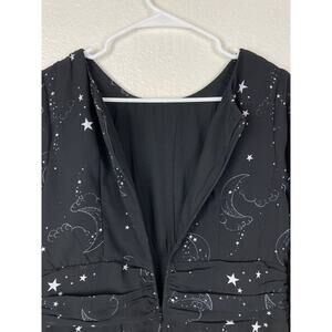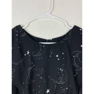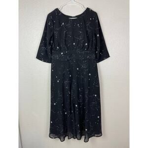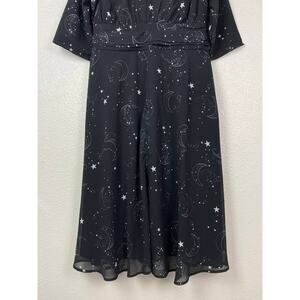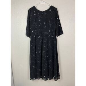 eShakti Black Dress Maxi Black Celestial Stars Half Sleeves Empire Waist Large