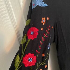 This eShakti dress features a sleek black sheath design, perfect for casual and work settings. The V-neckline and 3/4 cuffed sleeves add a sophisticated touch, while the red accents provide a vibrant contrast. A versatile piece that combines elegance with comfort.