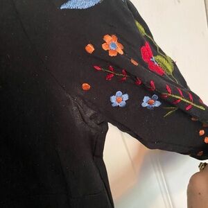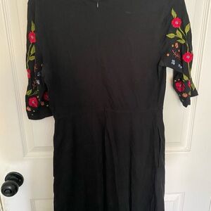 eShakti Black Sheath Dress with V-Neck and Red Cuffed Sleeves