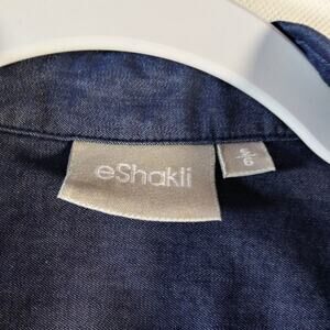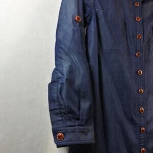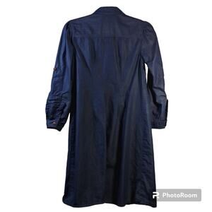 eShakti Blue Cotton Chambray Roll Tab Long Sleeve Shirt Dress Size S