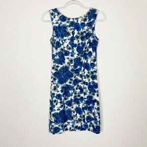 eShakti Blue Rose Sweetheart Neck Sheath Dress Sz Small