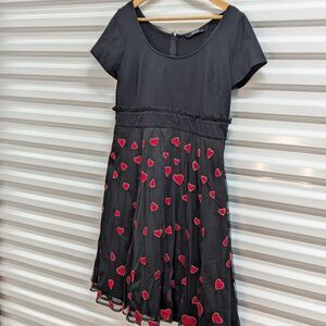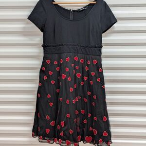 Made in India retro silhouette goes modern with our mixed media dress, styled with a wide boat-neck cotton knit bodice and heart embellished tulle skirt with a full flare for feminine whimsy and movement.