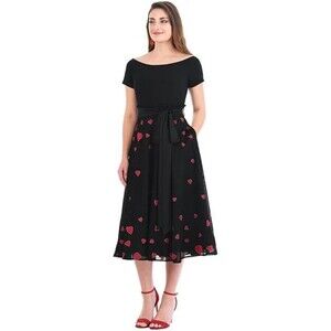 eShakti Custom Black Heart Embellished Mixed Media Dress