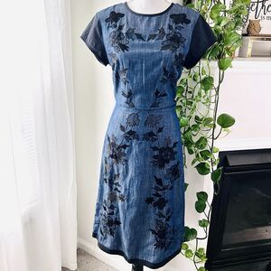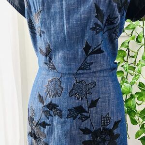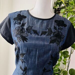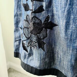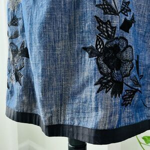eShakti Denim Lightweight Cotton Blue & Black Embroidered Comfy Dress - Sz Med 8