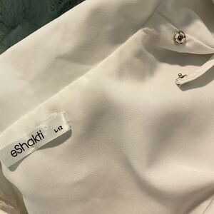 eShakti Double Breasted Shacket Brass Button Long Sleeve White Lined Women L NWT