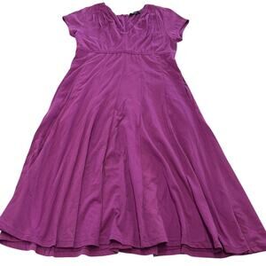 eShakti Dress Womens 4 Purple Fit Flare Short Sleeve V Neck Pockets Cotton