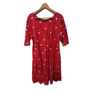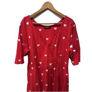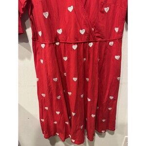 eShakti Embellished Heart Cotton Knit Over the Knee Dress Red with Pockets Sz 2X