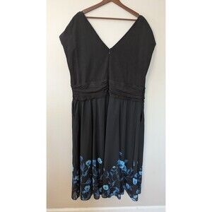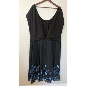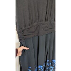 eShakti Floral Maxi Dress 3X 26W Black Blue Whimsigoth Pockets
