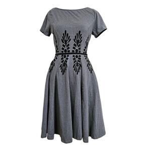 eShakti Gray Black Embroidered Fit and Flare Dress Size 4 Pockets Side Zip