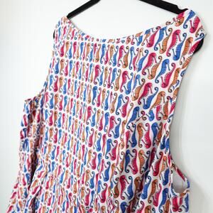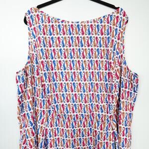 Chic midi dress with vibrant geometric patterns. Sleeveless design for versatile wear. Ideal for adding a pop of color.