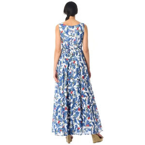{eShakti} Pleat Bib Floral Print Georgette Maxi Dress - Size XS (2)