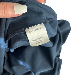 eShakti Plus 16W Sheath Dress Cap Sleeve Button Pockets Dark Blue Stretch