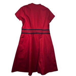 eShakti Red & Navy Womens Size 2X-20W Contrast Trim Poplin Dress