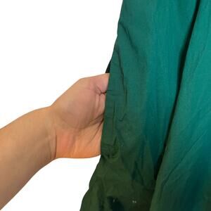 eShakti Shawl Collar Surplice Poplin Dress Emerald Green Mini Pleated Oz Size L
