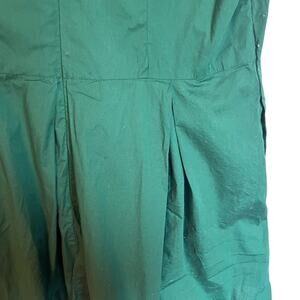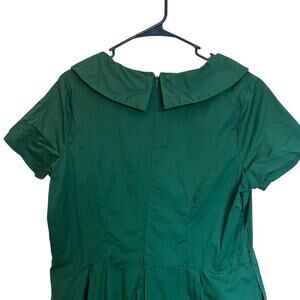 eShakti Shawl Collar Surplice Poplin Dress Emerald Green Mini Pleated Size Large