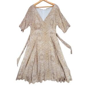 eShakti Wayward Fancies Midi Dress sz 1X 16W Damask Brown Beige Surplice Neckline