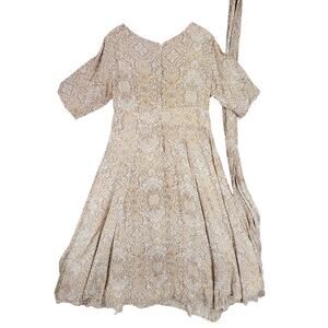 eShakti Wayward Fancies Midi Dress sz 1X 16W Damask Brown Beige Surplice Neck
